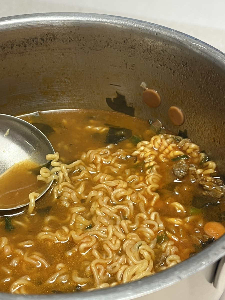 남은 미역국으로 라면 끓이면