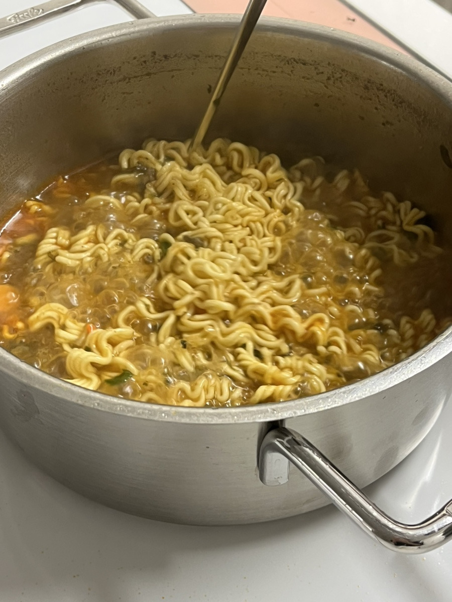 남은 미역국으로 라면 끓이기